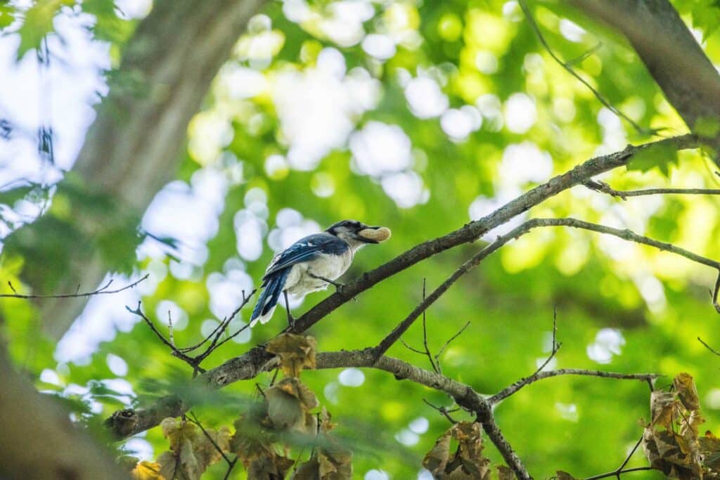 This diet makes them valuable garden allies. Blue jays feast on caterpillars, beetles, and grasshoppers—natural pest control that reduces the need for pesticides. They’re also expert acorn hoarders, often forgetting where they’ve buried seeds. This absentmindedness leads to new tree growth, helping to shape forests and backyard landscapes alike. If you’ve ever watched a blue jay tuck a peanut under a leaf, you’ve witnessed this caching behavior firsthand!