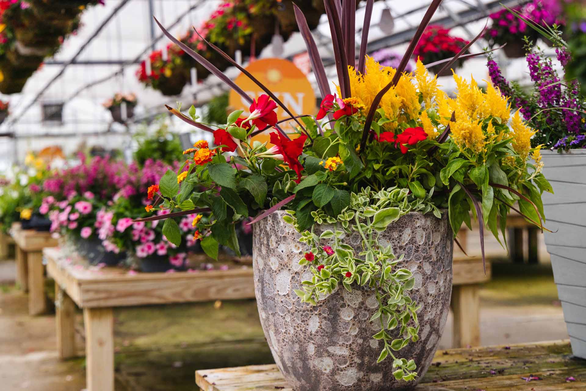 Love decorating your porch or patio with gorgeous flowering annuals but find it hard to keep a consistent watering schedule? Maybe a you find a watering routine easy but want plants that will forgive you for going on summer vacation and not watering for a few days? Drought-tolerant annual flowers and foliage plants are the perfect solution! They thrive in the heat of summer and are forgiving of inconsistent watering routines, though they do enjoy a thorough soaking every week or so. We put together a quick guide to the perfect annual combo planter that loves full sun spaces, can handle a little neglect, and still provide color all season long.
