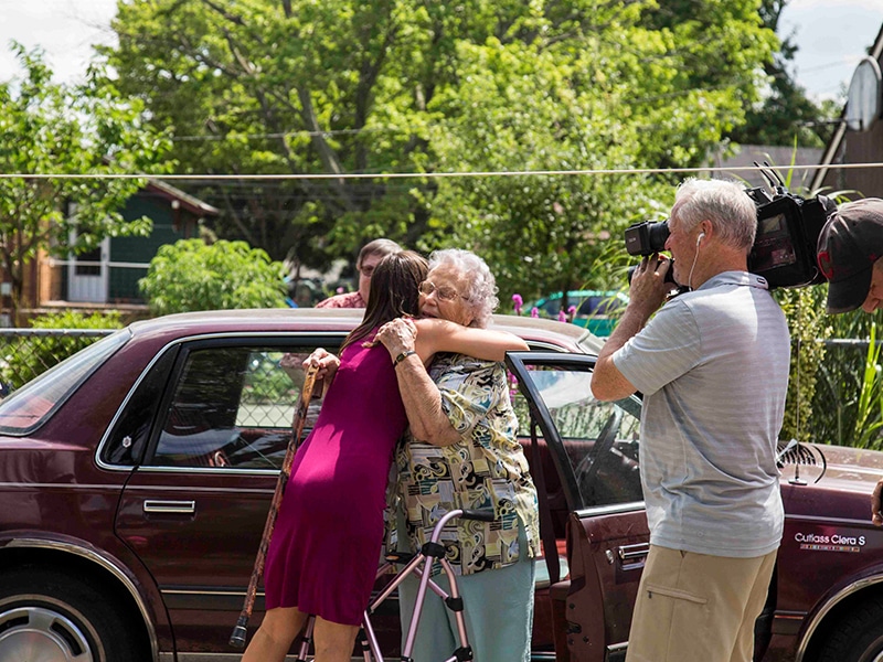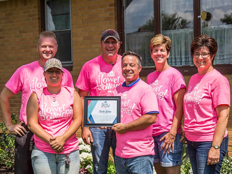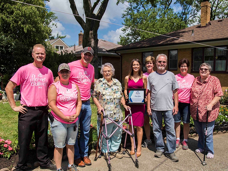 Their Submission: I’d like to nominate my Baba (Ukrainian word for grandma), Emilia Galan, for your next Flower Bombing! She deserves this for so many reasons. She came to the states in the 1950’s as a holocaust survivor with only $3 to her name, worked 3 jobs to help support her 3 children, and most impressively, never complained. She has a smile that lights up an entire room and this deep sense of joy that is immediately contagious. She turns 95 this June and she is still living by herself in the house she and her husband built. The one thing that has gotten her down lately is that her garden needs perking up – her favorite hobby is gardening and she has always taken pride in having one of the most beautiful front yards on the block, but hasn’t been able to garden as much these past few years due to arthritis. She has been a longtime customer of Pettiti’s, with an annual trip to buy her hanging flower baskets every May. Please help me wish her a happy birthday and thank her for being a great customer and grandmother by Flower Bombing her house! There’s a pretty good chance she’ll end up making you pierogis!