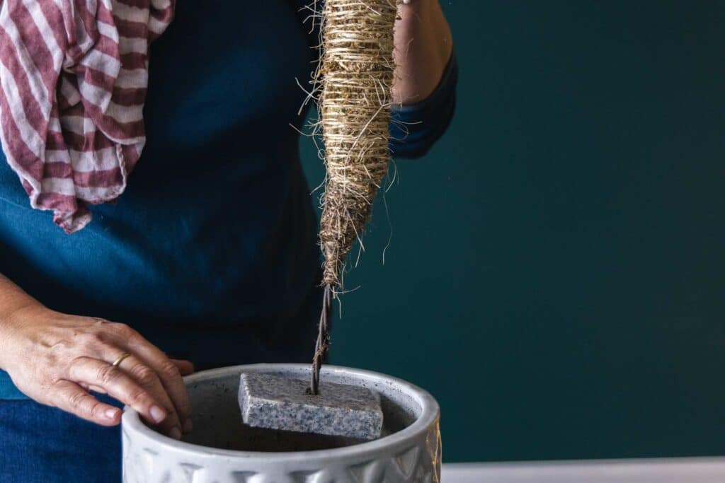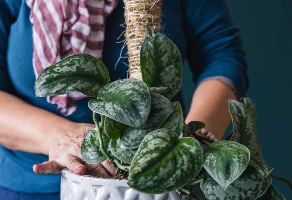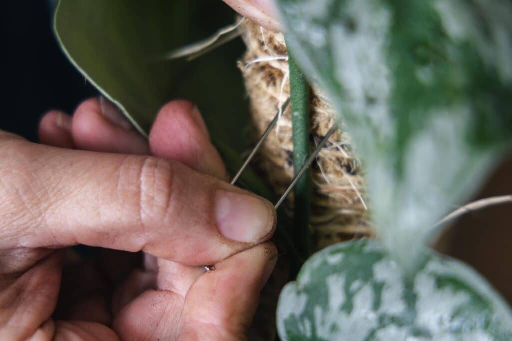 Moss poles are a versatile tool for houseplant growers, and extremely easy to install. They are most effective when installed in a container with a vining houseplant or with an epiphyte (a plant that grows in a non-harmful way on another plant like an orchid, fern, bromeliad, or air plant).
