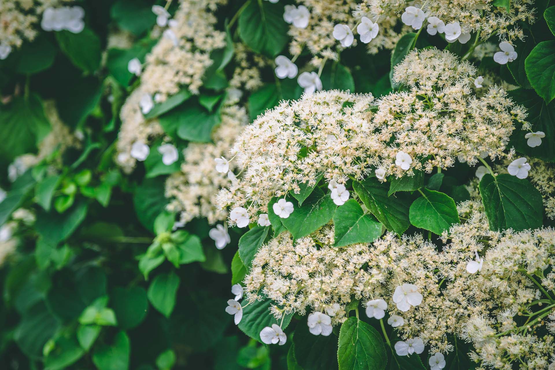 A versatile flowering vine that can be used as a clinging wall covering, on an arbor or fence, and also as a ground or bank covering. Glossy green foliage is covered by fragrant clusters of white, lacecap flowers in late spring to early summer. It’s reddish brown exfoliating bark provides attractive winter interest along with its dried flowers. Japanese or False Climbing Hydrangea, (Schizophragma hydrangeoides), tends to produce blooms faster and grow more vigorous than the true Hydrangea vine with white and pink flowering varieties, also variegated leaves. Browse our selection of Climbing Hydrangea varieties online.