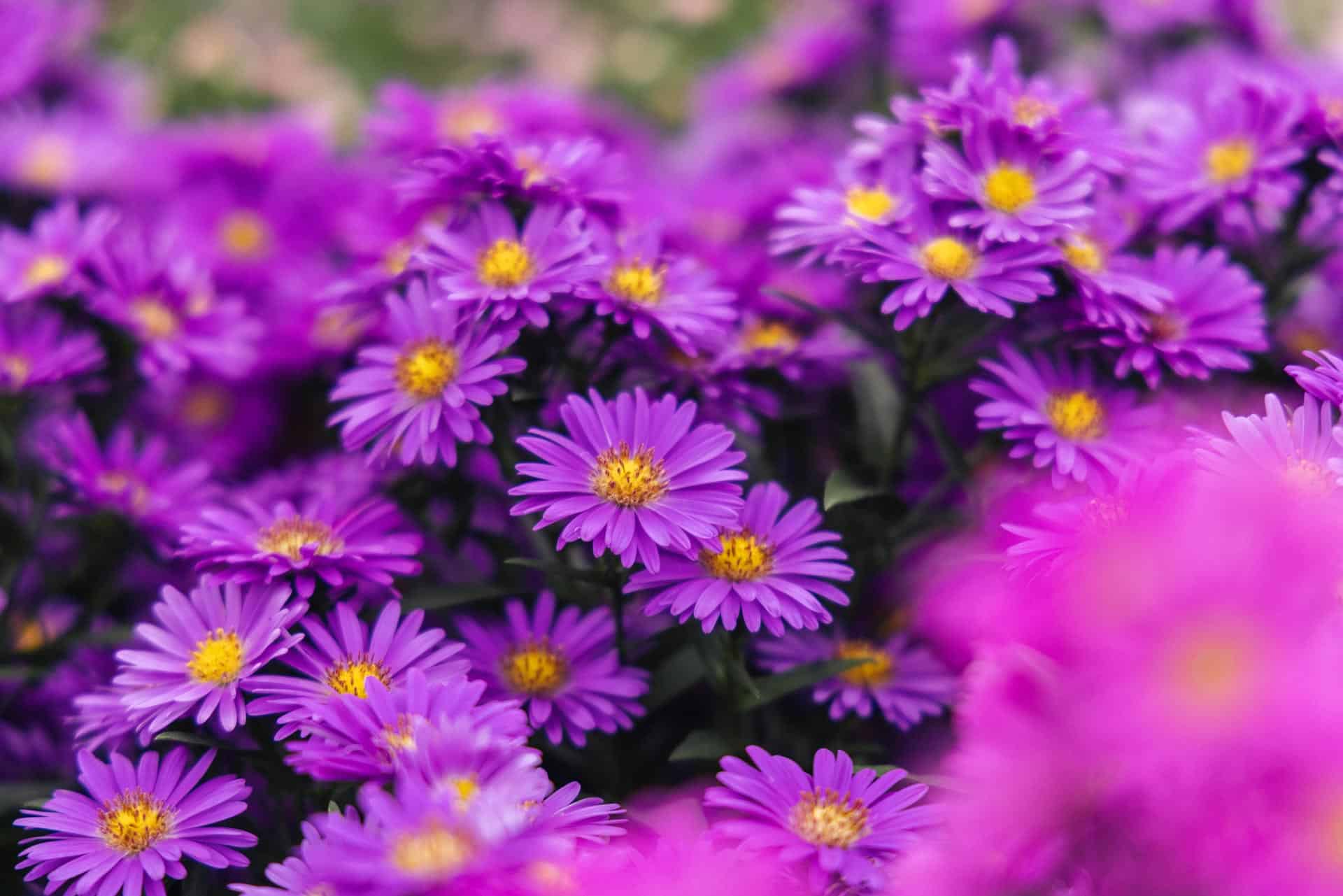 New England Asters and New York Asters are perennials producing small, vivid colored, daisy-like flowers with yellow centers late summer to fall. In shades of blue-purple, they nicely complement and complete a rainbow of fall mums. Newer varieties have been bred for excellent disease resistance, compact, mounding habits, and a late season show. The popular Henry™ series is a type of New York Aster that’s hardy and particularly good for supporting fall pollinators. Henry™ tends to display a more compact habit, thinner stems, and smoother leaves than New England types, though they look very similar. Varieties in the popular Kickin® and ‘Vibrant Dome’ series are all New England types. Asters are easy to grow in containers and in the cutting garden. Shop our online selection of New England Asters available now.