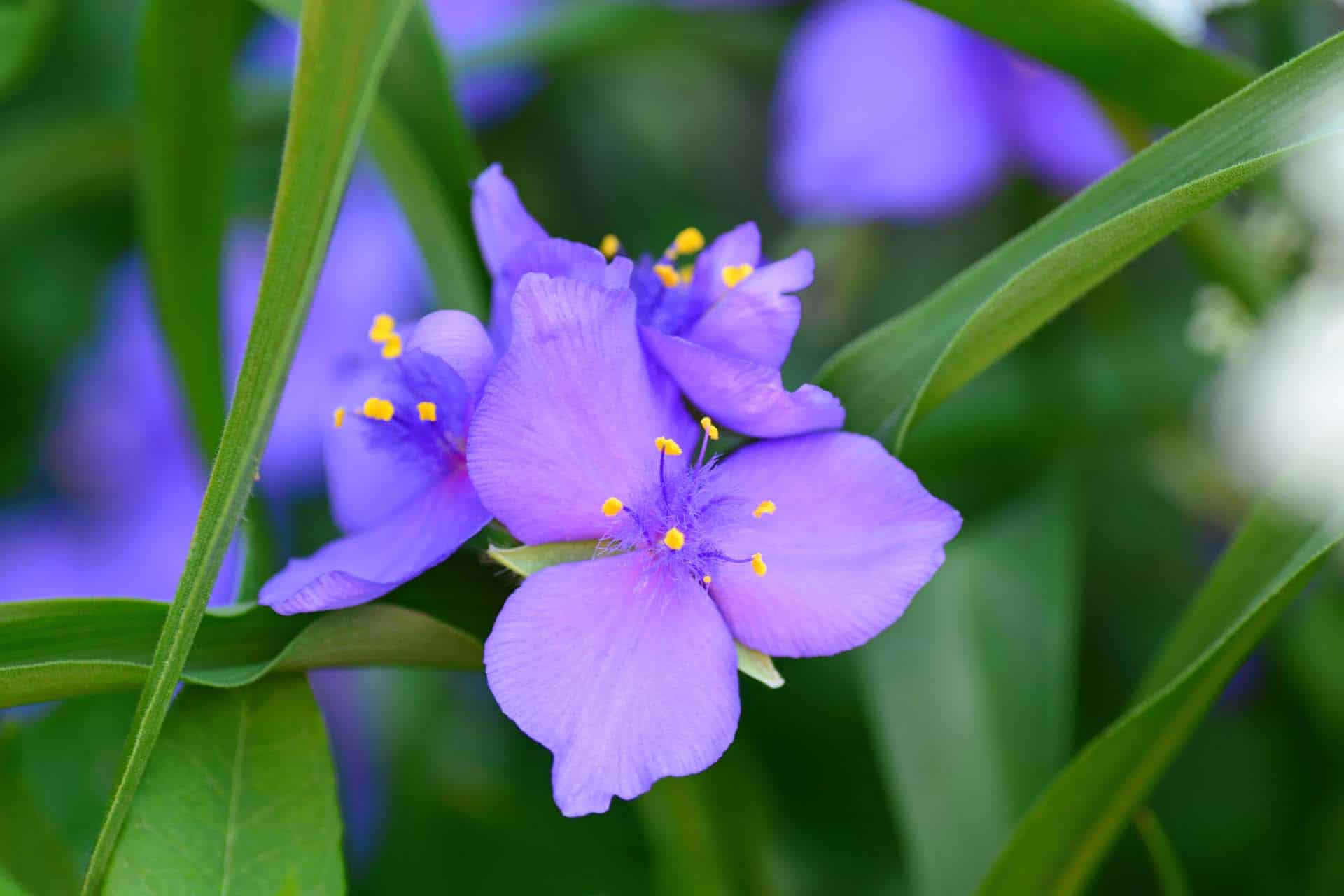 A beautiful, upright, clumping spiderwort producing intense, blue-violet, triangular blossoms that dance over slightly arching, lance shaped foliage. These easy, self-cleaning beauties grow best in part shade gardens and shady containers. ‘Sweet Kate’ is a showy variety possessing brilliant golden foliage and electric blue flowers. Cut back hard after flowering to refresh the foliage and produce additional blooms.