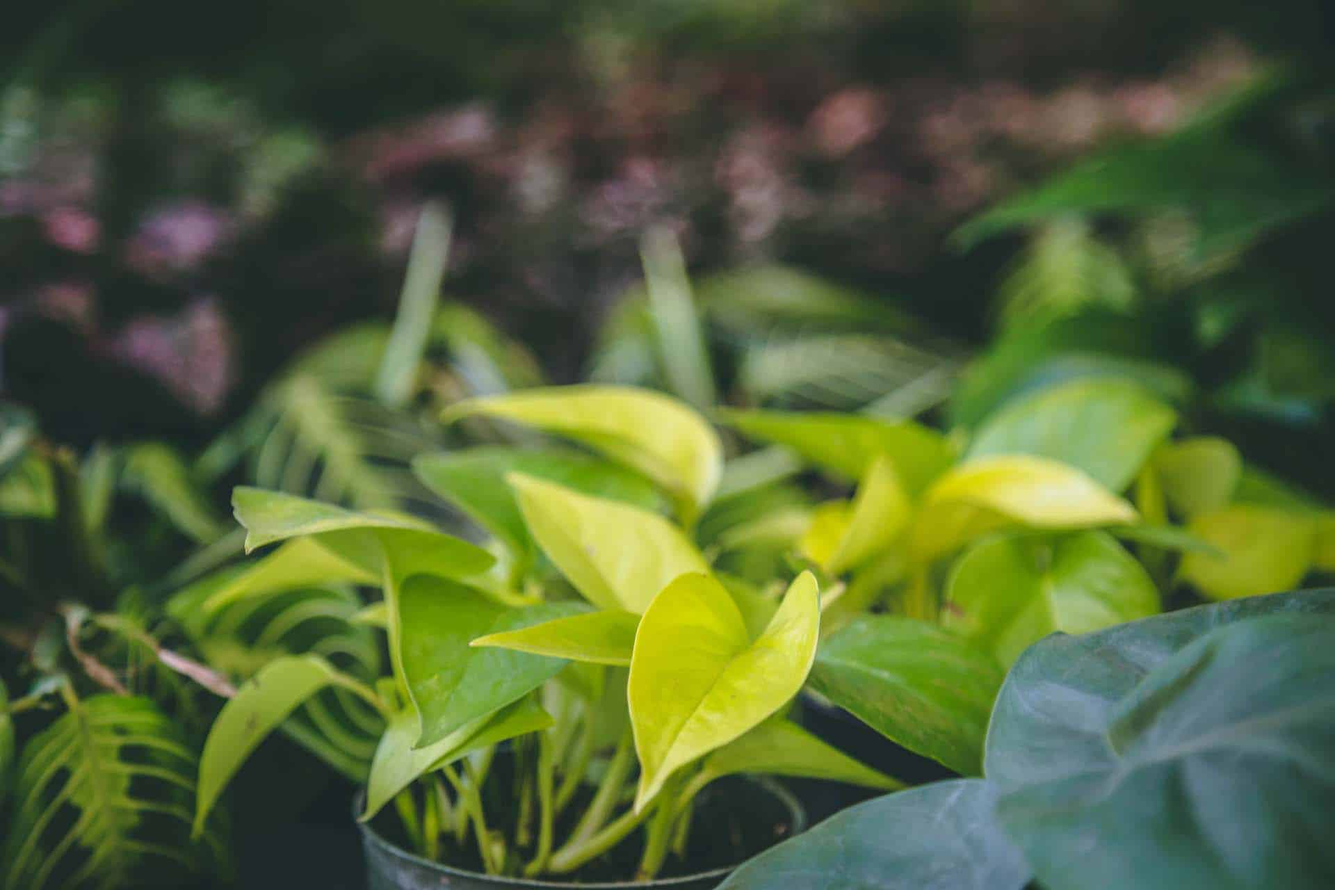 A small family of tropical foliage plants that are very similar to Philodendron in that they are easy to care for, make excellent air purifiers, and grow best trailing from hanging baskets and pots in less than ideal environments. A. k. a. Pothos or Devil’s Ivy, its most popular varieties have heart shaped foliage, mottled with white or yellow, and can grow 6 feet long or longer. View our online selection of Pothos varieties and quantities.