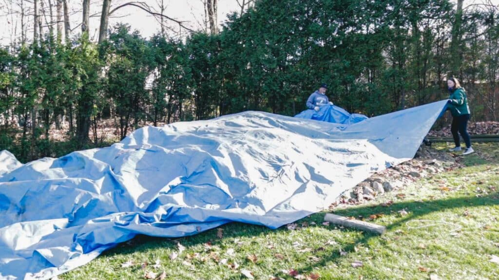 - Cover over the top of that with a heavy-duty tarp.